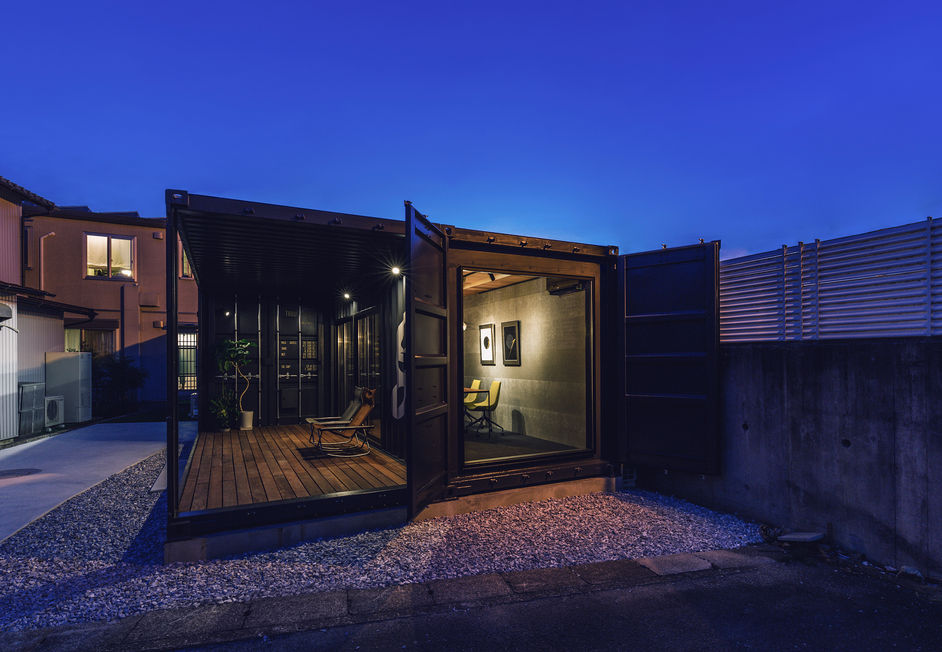 Four 20ft freight containers were connected together to create an office building that takes advantage of the solid image of the containers, and is combined with decks and large glass openings to ensure livability and comfort.